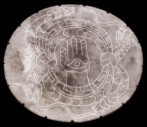 A more Christian-themed representation of the Hamsa is an art work called “The Divine World” by Kahlil Gibran, a Lebanese Maronite Catholic prominent in the early 20th century as a poet, painter, writer, philosopher, theologian.
