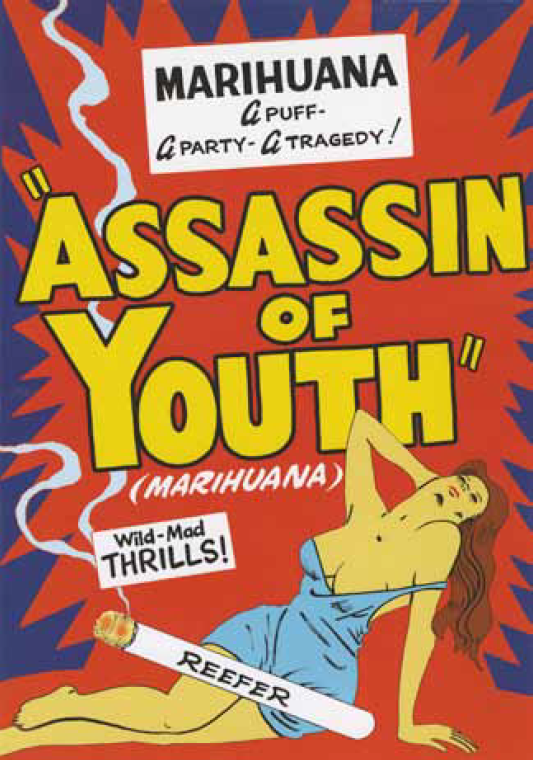 Filmposter van de film die marihuana als uiterst verdacht en gevaarlijk diende neer te zetten.. Klik voor artikel over de ware reden waarom hennep illegaal is; hier op de site.